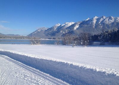 Die Ortsmitte von Wallgau erreichen Sie in etwa 20 Gehminuten. Ein kleiner Dorfladen mit frischen Semmeln liegt nur ca. 1 km entfernt, der nächste größere Supermarkt befindet sich im Nachbarort Krün (ca. 2,5 km).